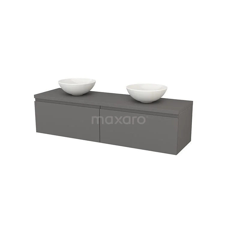 Modulo+ Plato Vanity units for countertop basin | 160 cm Basalt Handle-less front Basalt worktop 2 Side-by-side drawers