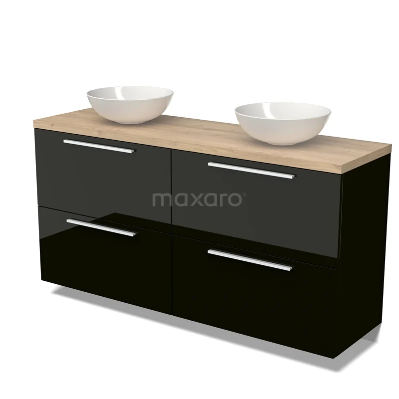 Modulo Plato Vanity units for countertop basin | 160 cm High-gloss black Flat front Light brown oak worktop 4 high drawers