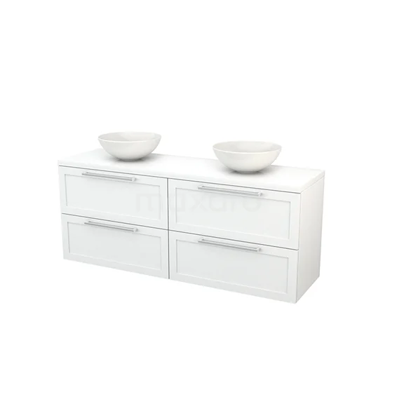 Modulo+ Plato Vanity units for countertop basin | 160 cm High-gloss white Frame front High-gloss white worktop 4 drawers