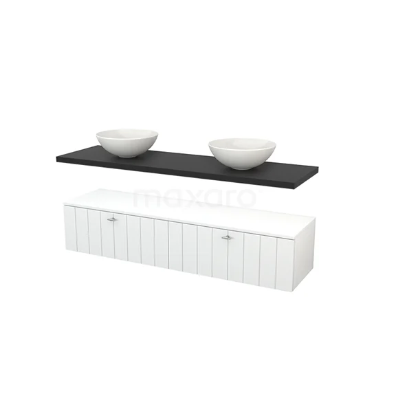 Modulo+ Plato Vanity units for countertop basin | 160 cm High-gloss white Slat front Carbon worktop Low floating