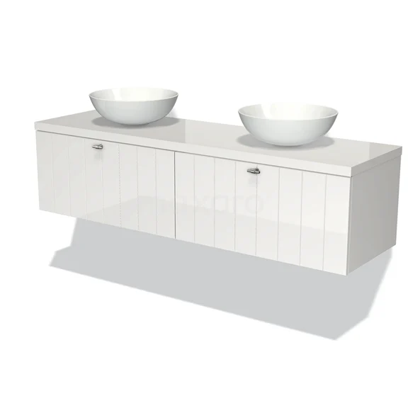 Modulo Plato Vanity units for countertop basin | 160 cm High-gloss white Slat front High-gloss white worktop 2 Side-by-side drawers