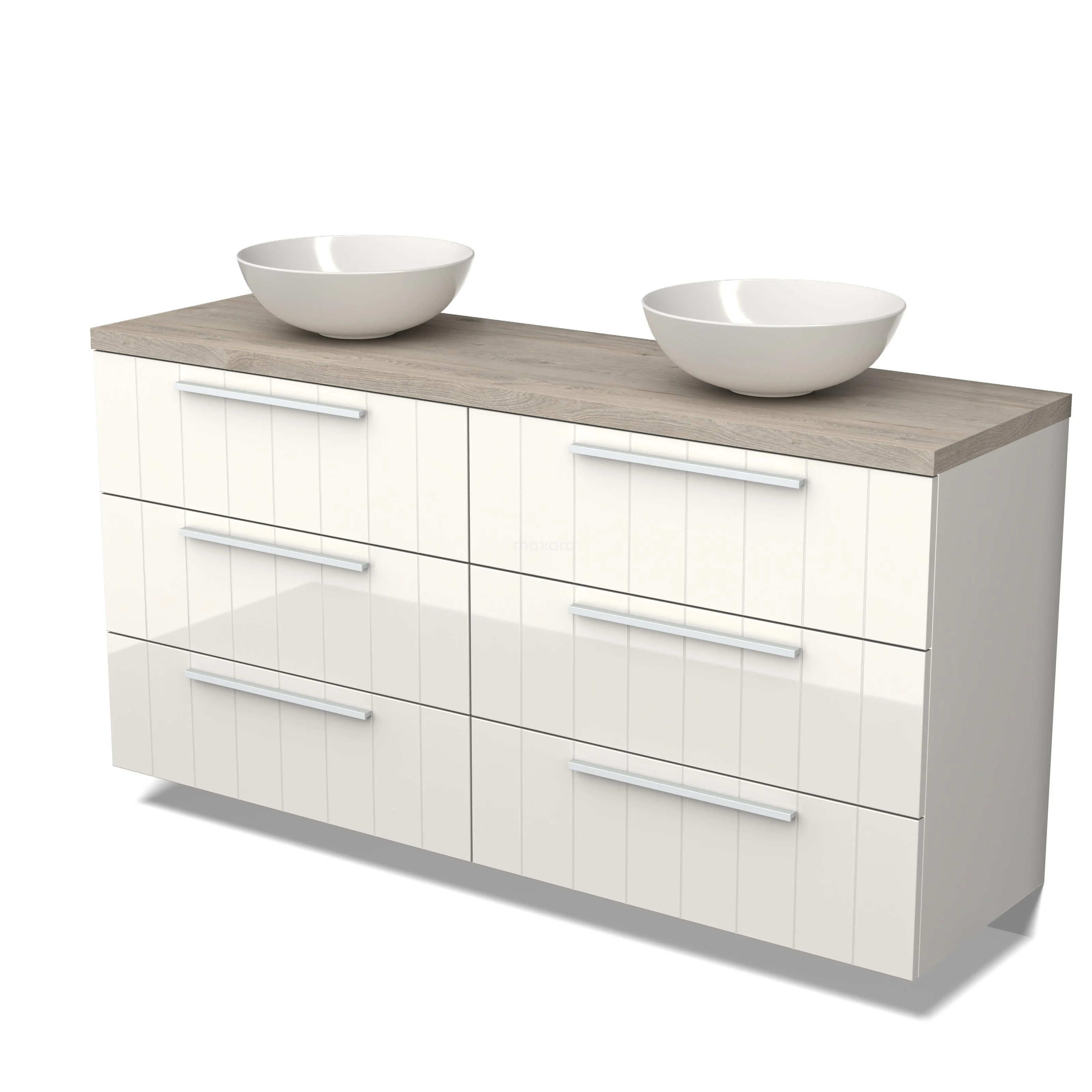 Modulo Plato Vanity units for countertop basin | 160 cm High-gloss white Slat front Light grey oak worktop 6 drawers