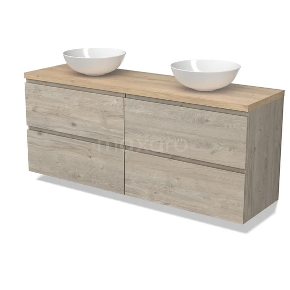 Modulo Plato Vanity units for countertop basin | 160 cm Light grey oak Handle-less front Light brown oak worktop 4 drawers