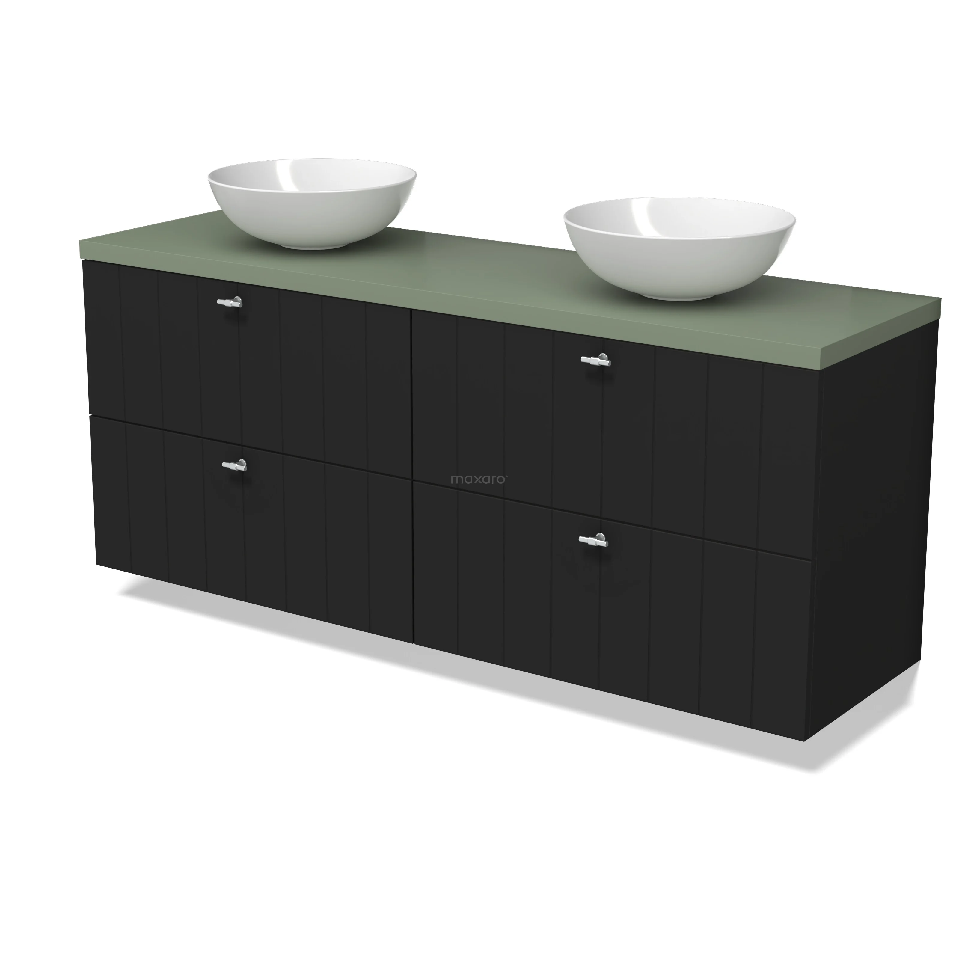 Modulo Plato Vanity units for countertop basin | 160 cm Matte black Slat front Sage green worktop 4 drawers