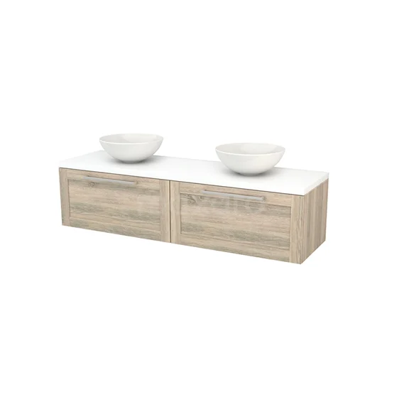 Modulo+ Plato Vanity units for countertop basin | 160 cm Matte white Frame front Matte white worktop 2 Side-by-side drawers