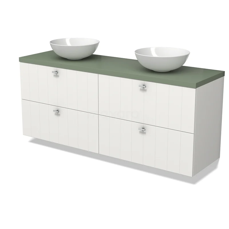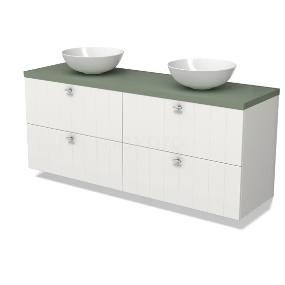 Modulo Plato Vanity units for countertop basin | 160 cm Matte white Slat front Sage green worktop 4 drawers