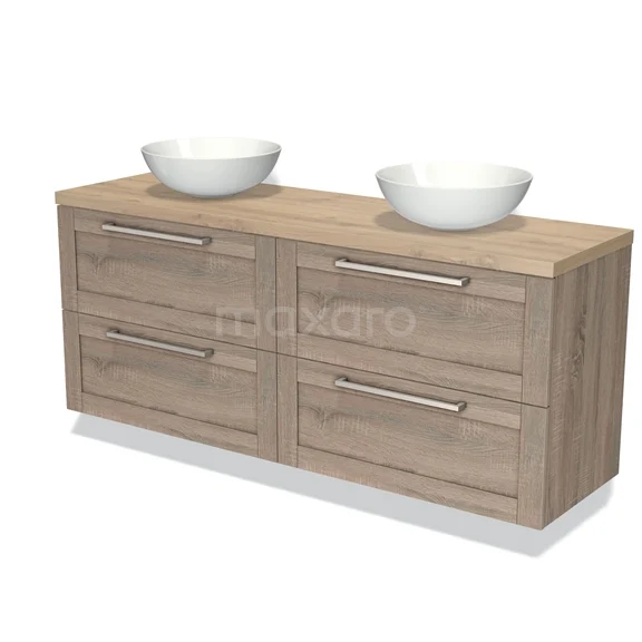 Modulo Plato Vanity units for countertop basin | 160 cm Oak Bordered front Light brown oak worktop 4 drawers