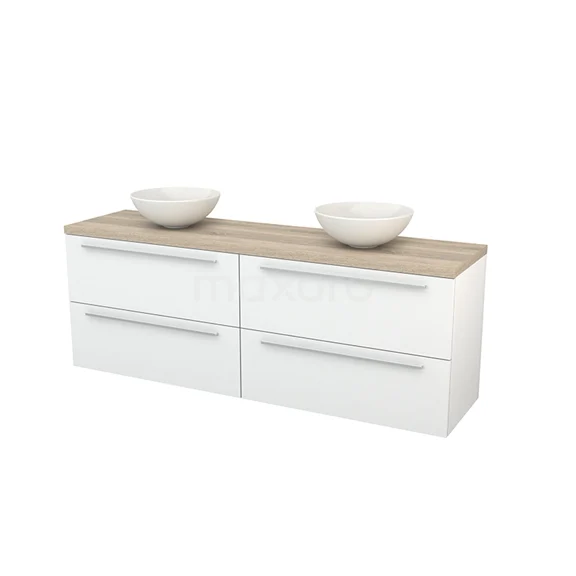 Modulo+ Plato Vanity units for countertop basin | 180 cm High-gloss white Flat front Oak worktop 4 drawers