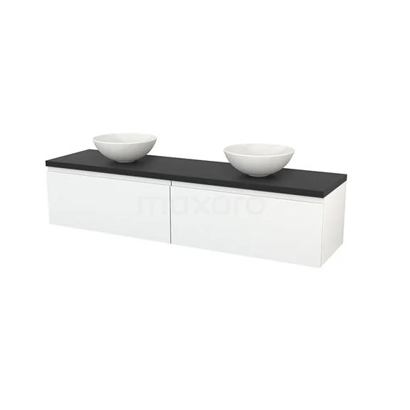 Modulo+ Plato Vanity units for countertop basin | 180 cm High-gloss white Handle-less front Carbon worktop 2 Side-by-side drawers