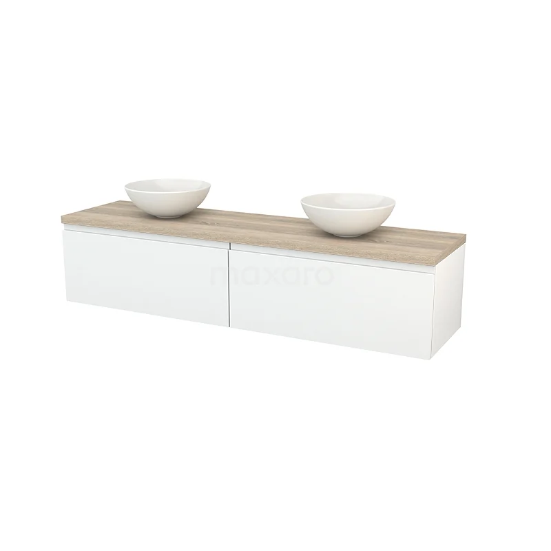 Modulo+ Plato Vanity units for countertop basin | 180 cm High-gloss white Handle-less front Oak worktop 2 Side-by-side drawers