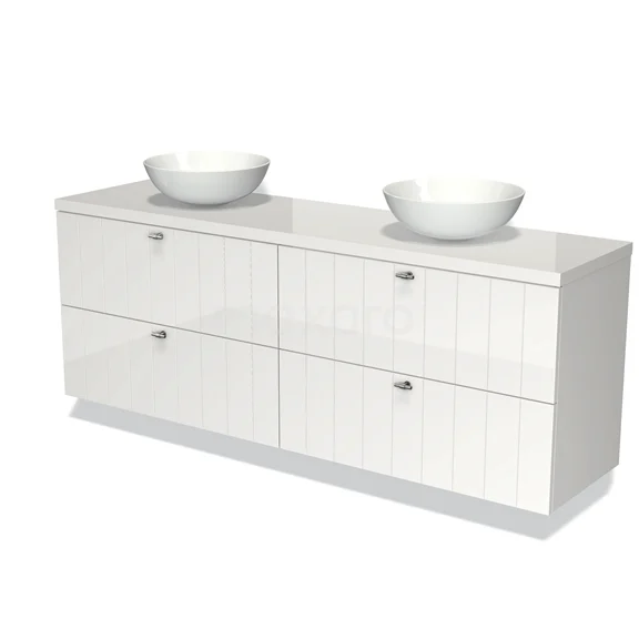 Modulo Plato Vanity units for countertop basin | 180 cm High-gloss white Slat front High-gloss white worktop 4 drawers