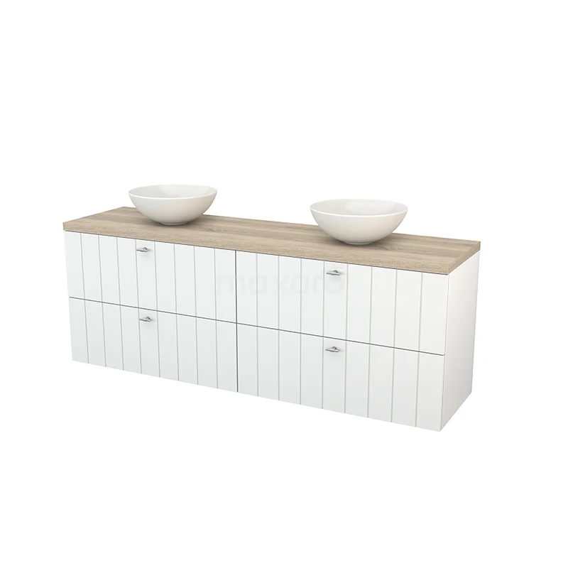 Modulo+ Plato Vanity units for countertop basin | 180 cm High-gloss white Slat front Oak worktop 4 drawers