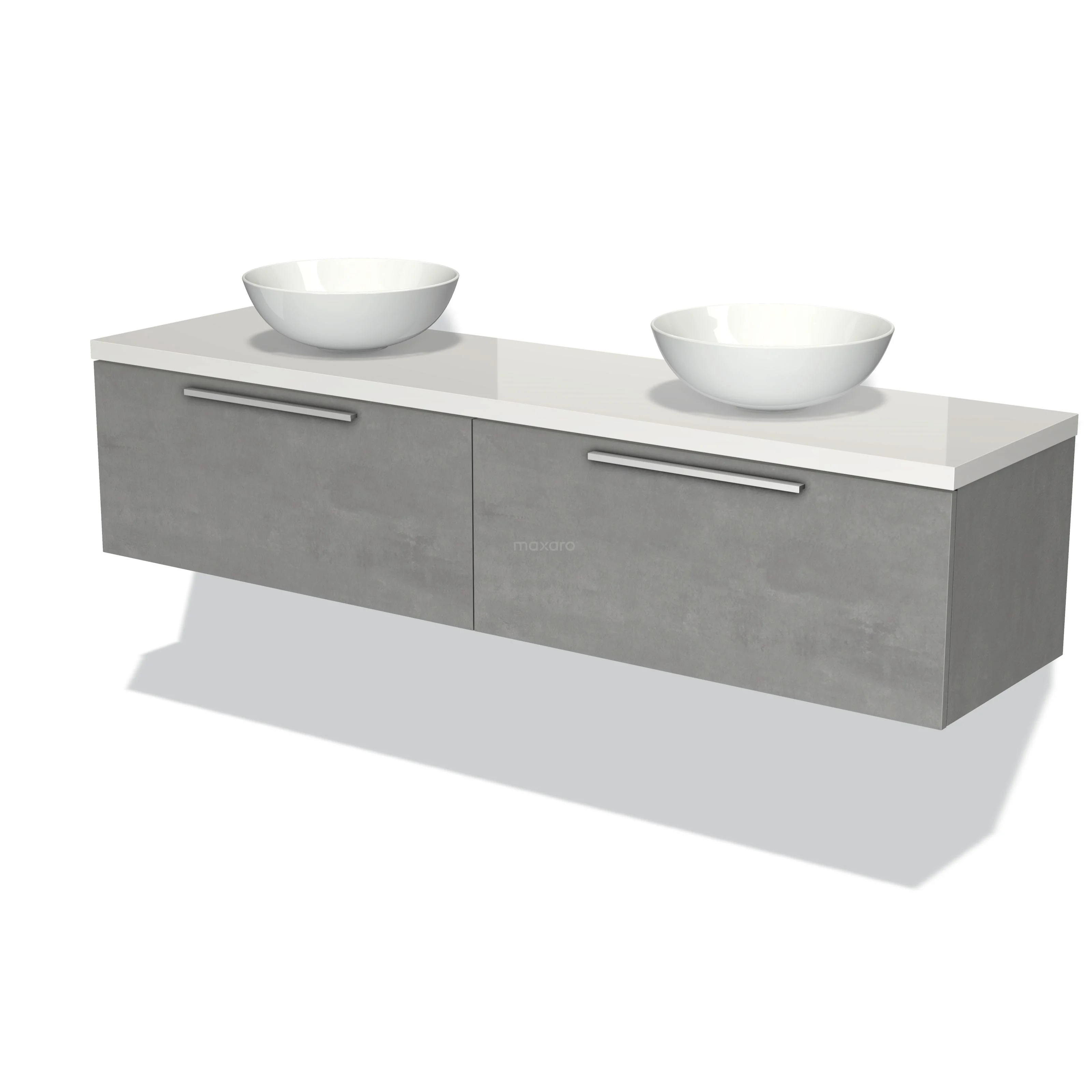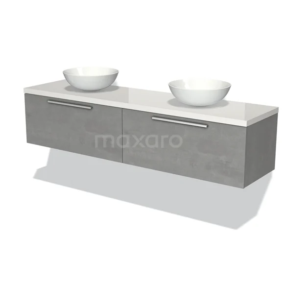 Modulo Plato Vanity units for countertop basin | 180 cm Light grey concrete Flat front High-gloss white worktop 2 Side-by-side drawers