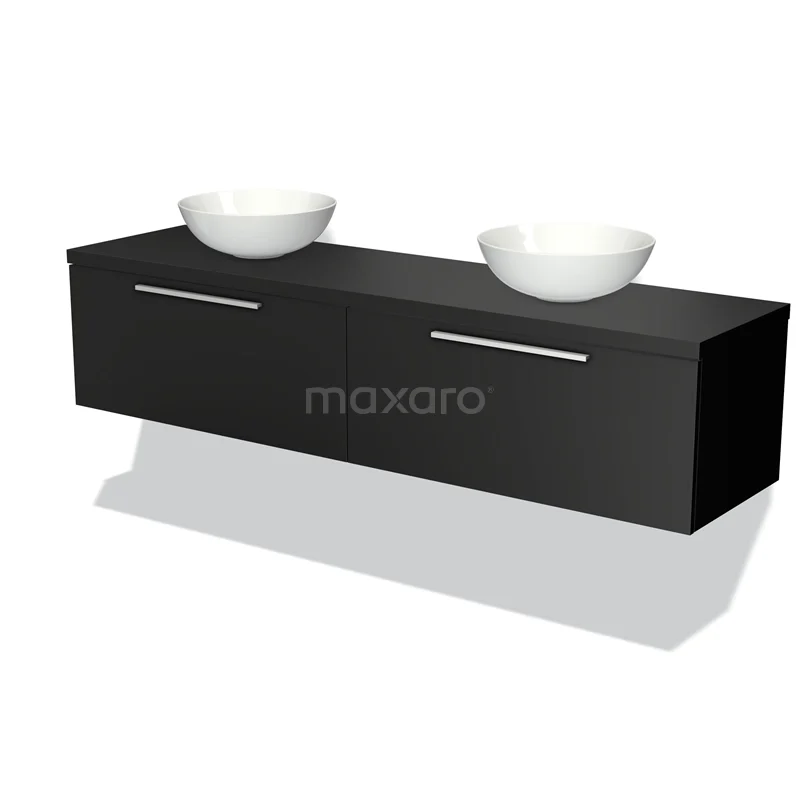 Modulo Plato Vanity units for countertop basin | 180 cm Matte black Flat front Matte black worktop 2 Side-by-side drawers