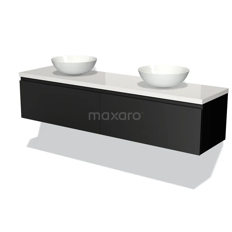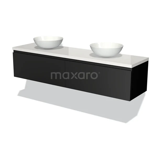 Modulo Plato Vanity units for countertop basin | 180 cm Matte black Handle-less front High-gloss white worktop 2 Side-by-side drawers