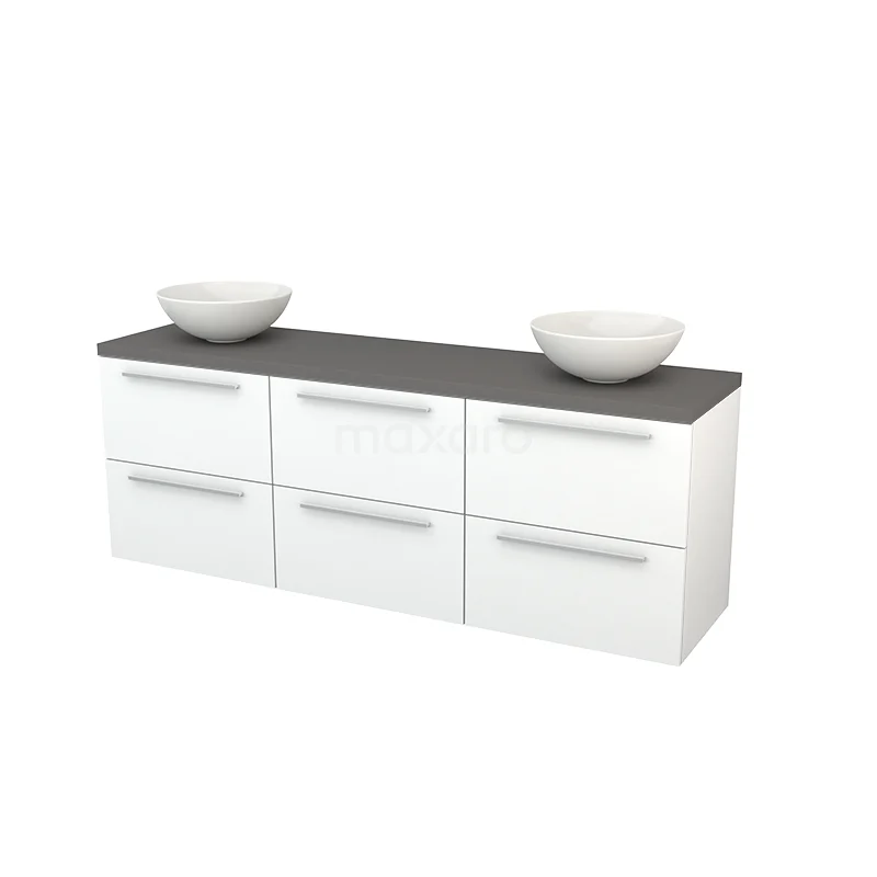 Modulo+ Plato Vanity units for countertop basin | 180 cm Matte white Flat front Basalt worktop 6 drawers