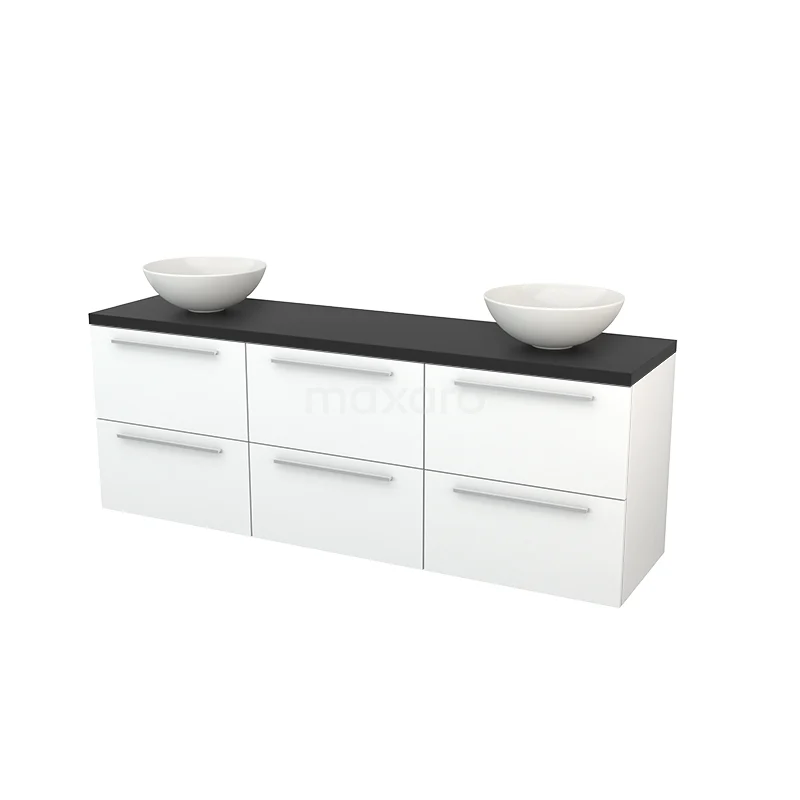 Modulo+ Plato Vanity units for countertop basin | 180 cm Matte white Flat front Carbon worktop 6 drawers