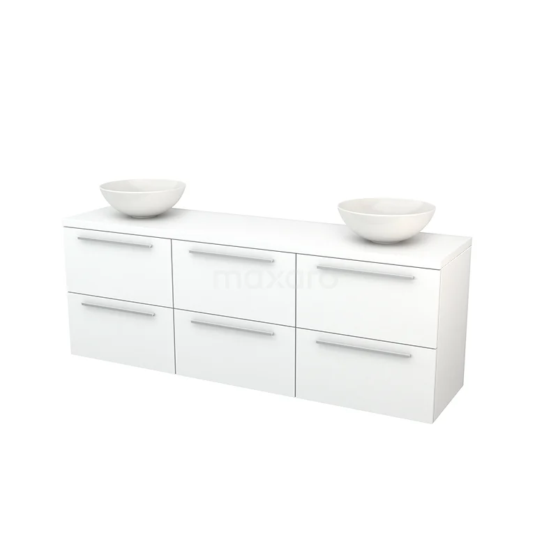 Modulo+ Plato Vanity units for countertop basin | 180 cm Matte white Flat front Matte white worktop 6 drawers