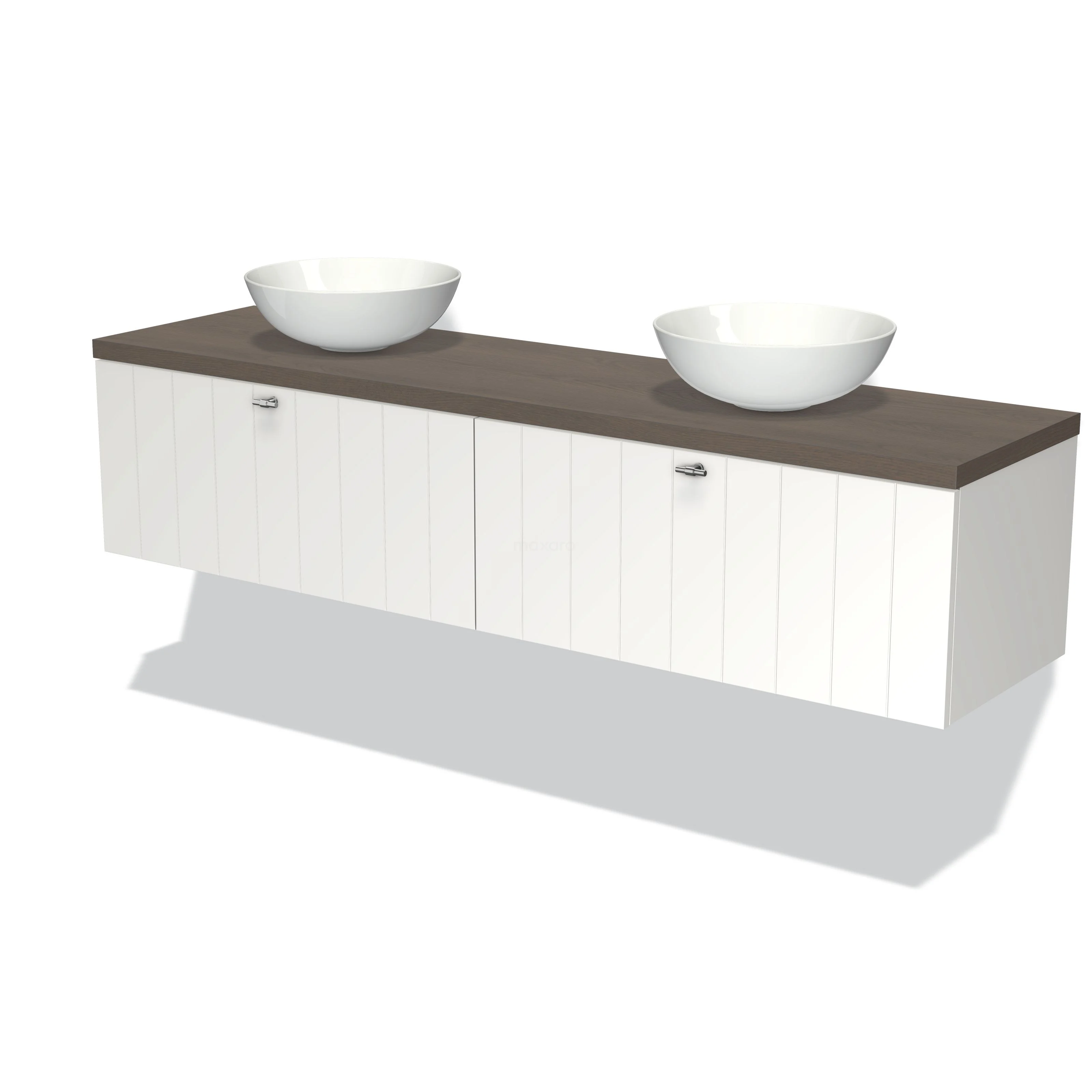 Modulo Plato Vanity units for countertop basin | 180 cm Matte white Slat front Dark brown oak worktop 2 Side-by-side drawers