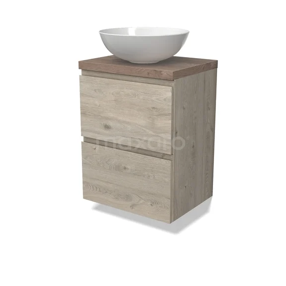 Modulo Plato Vanity units for countertop basin | 50 cm Light grey oak Handle-less front Mid brown oak worktop 2 Stacked drawers