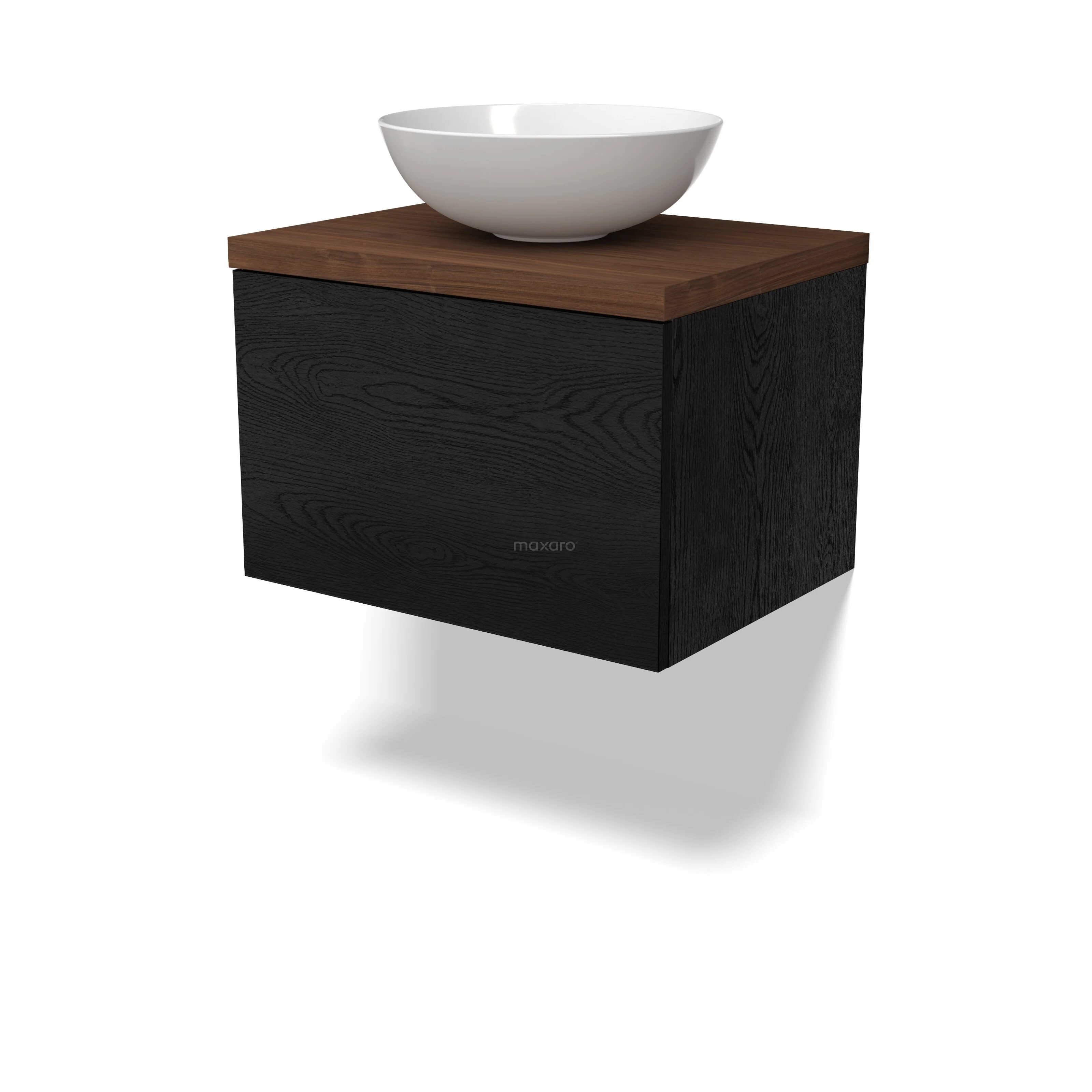 Modulo Plato Vanity units for countertop basin | 60 cm Black oak Flat front Walnut worktop 1 drawer