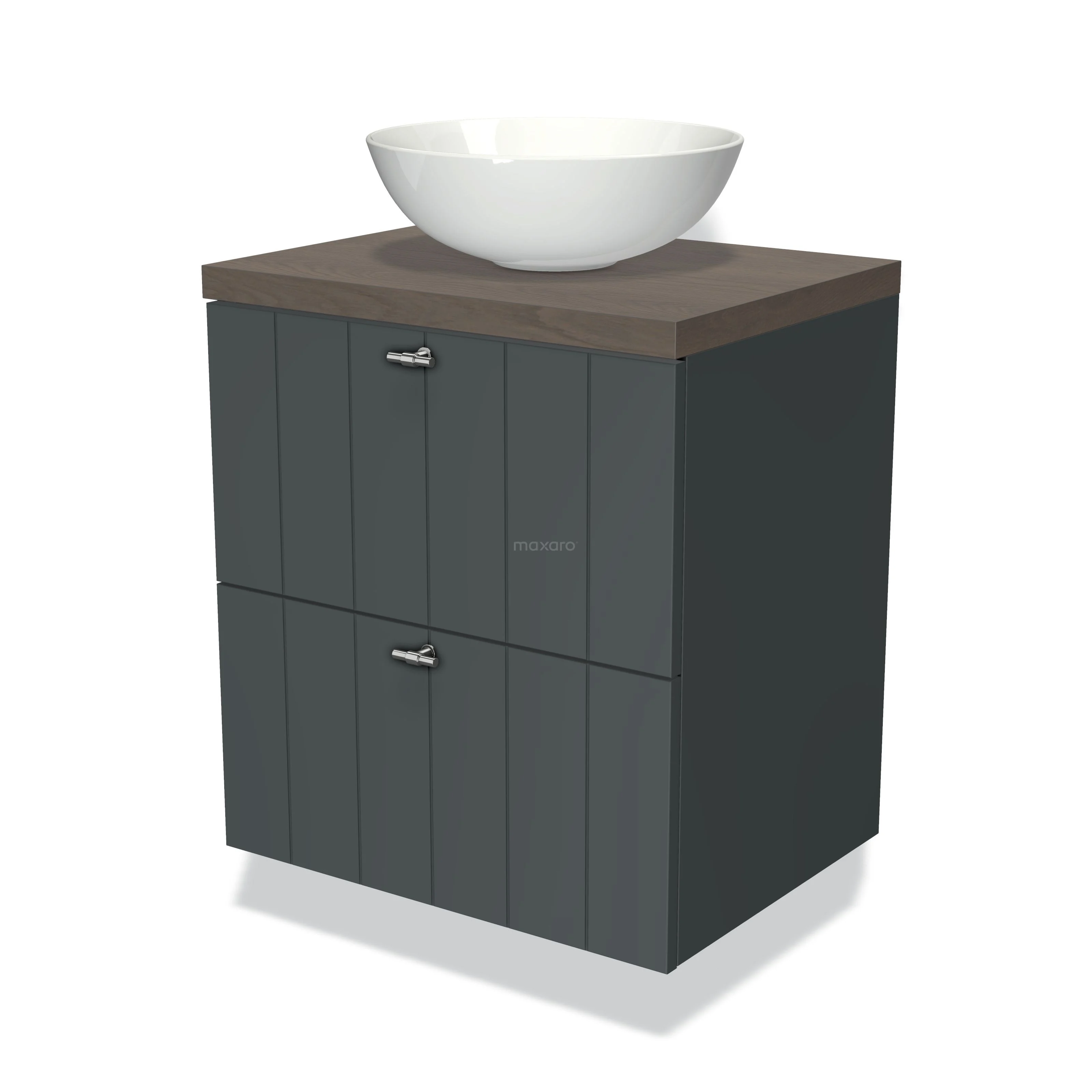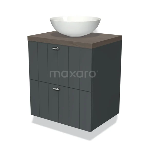 Modulo Plato Vanity units for countertop basin | 60 cm Dark grey Slat front Dark brown oak worktop 2 Stacked drawers