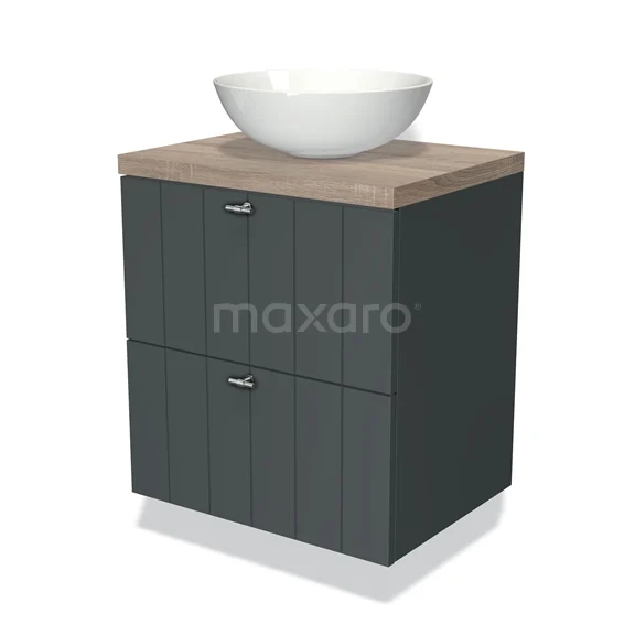 Modulo Plato Vanity units for countertop basin | 60 cm Dark grey Slat front Oak worktop 2 Stacked drawers