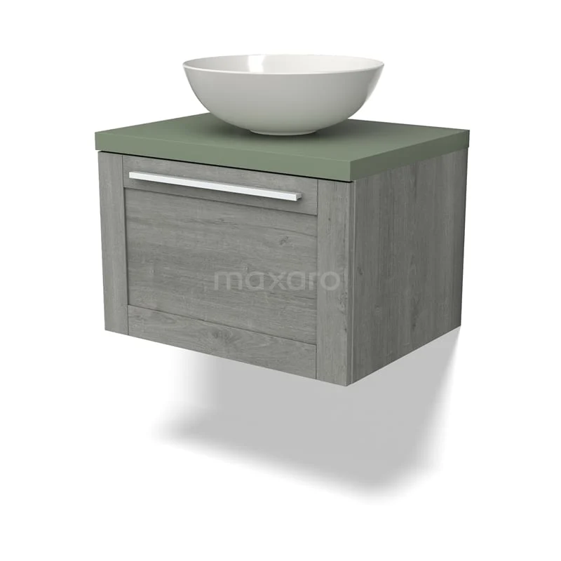 Modulo Plato Vanity units for countertop basin | 60 cm Grey oak Bordered front Sage green worktop 1 drawer