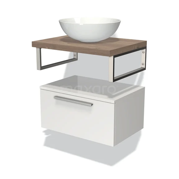 Modulo Plato Vanity units for countertop basin | 60 cm High-gloss white Flat front Mid brown oak worktop Low floating