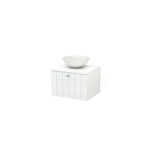 Modulo+ Plato Vanity units for countertop basin | 60 cm High-gloss white Slat front High-gloss white worktop 1 drawer