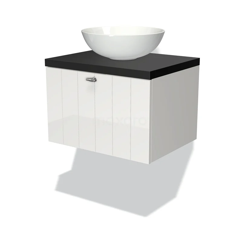 Modulo Plato Vanity units for countertop basin | 60 cm High-gloss white Slat front Matte black worktop 1 drawer
