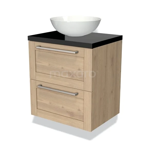 Modulo Plato Vanity units for countertop basin | 60 cm Light brown oak Bordered front High-gloss black worktop 2 Stacked drawers