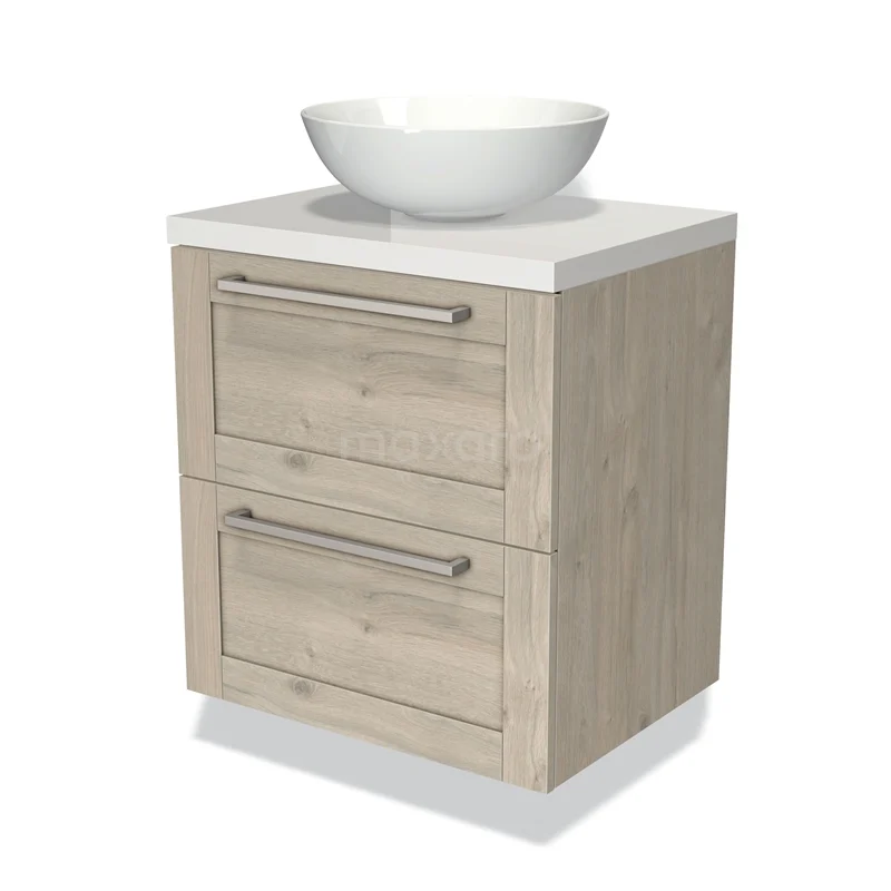 Modulo Plato Vanity units for countertop basin | 60 cm Light grey oak Bordered front High-gloss white worktop 2 Stacked drawers
