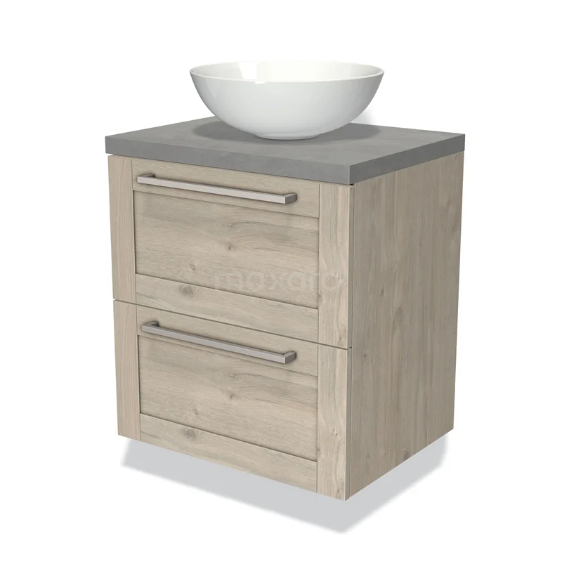 Modulo Plato Vanity units for countertop basin | 60 cm Light grey oak Bordered front Light grey concrete worktop 2 Stacked drawers