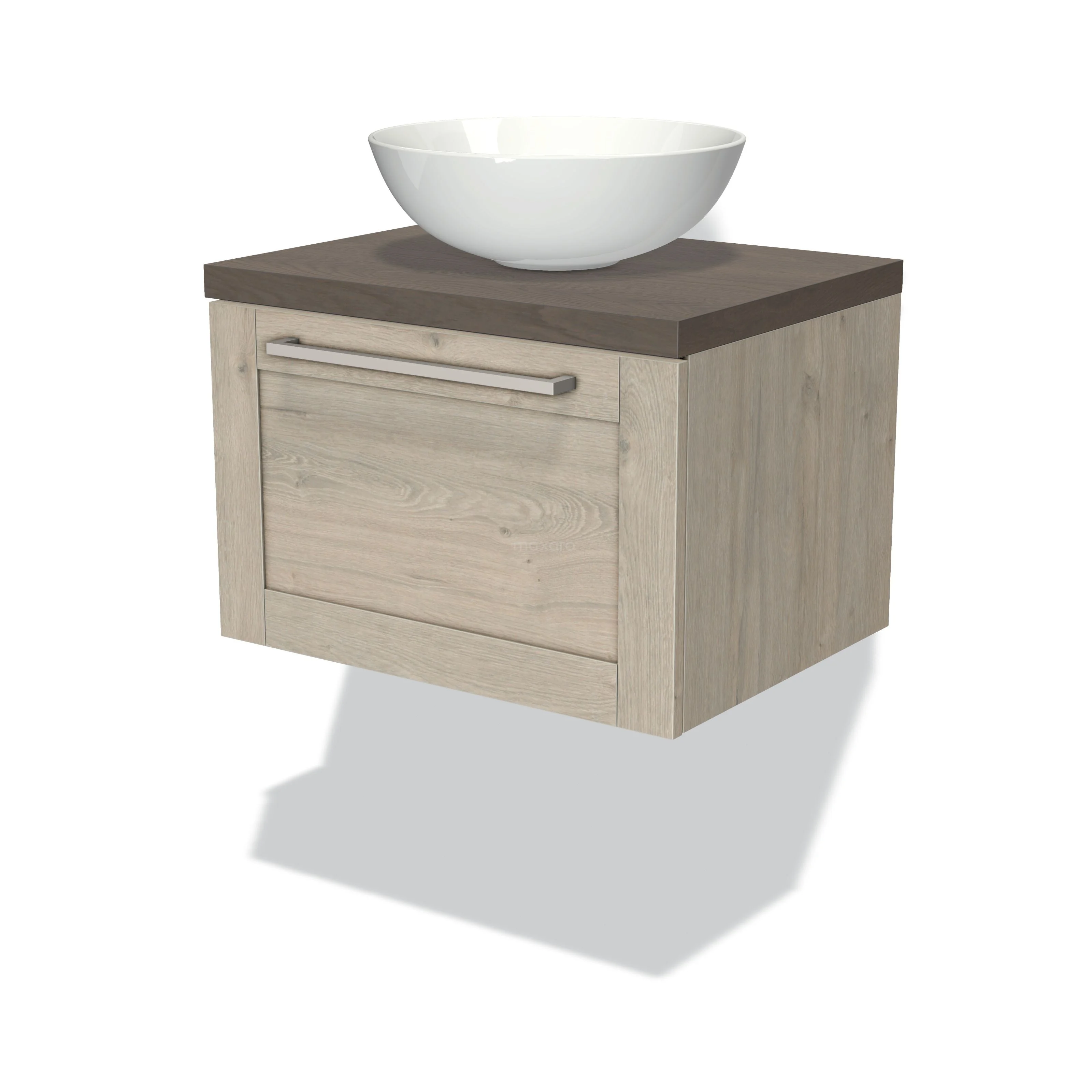 Modulo Plato Vanity units for countertop basin | 60 cm Light grey oak Frame front Dark brown oak worktop 1 drawer