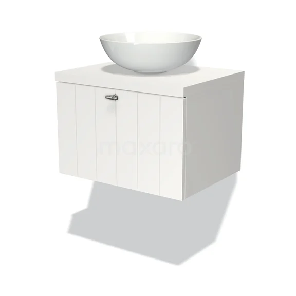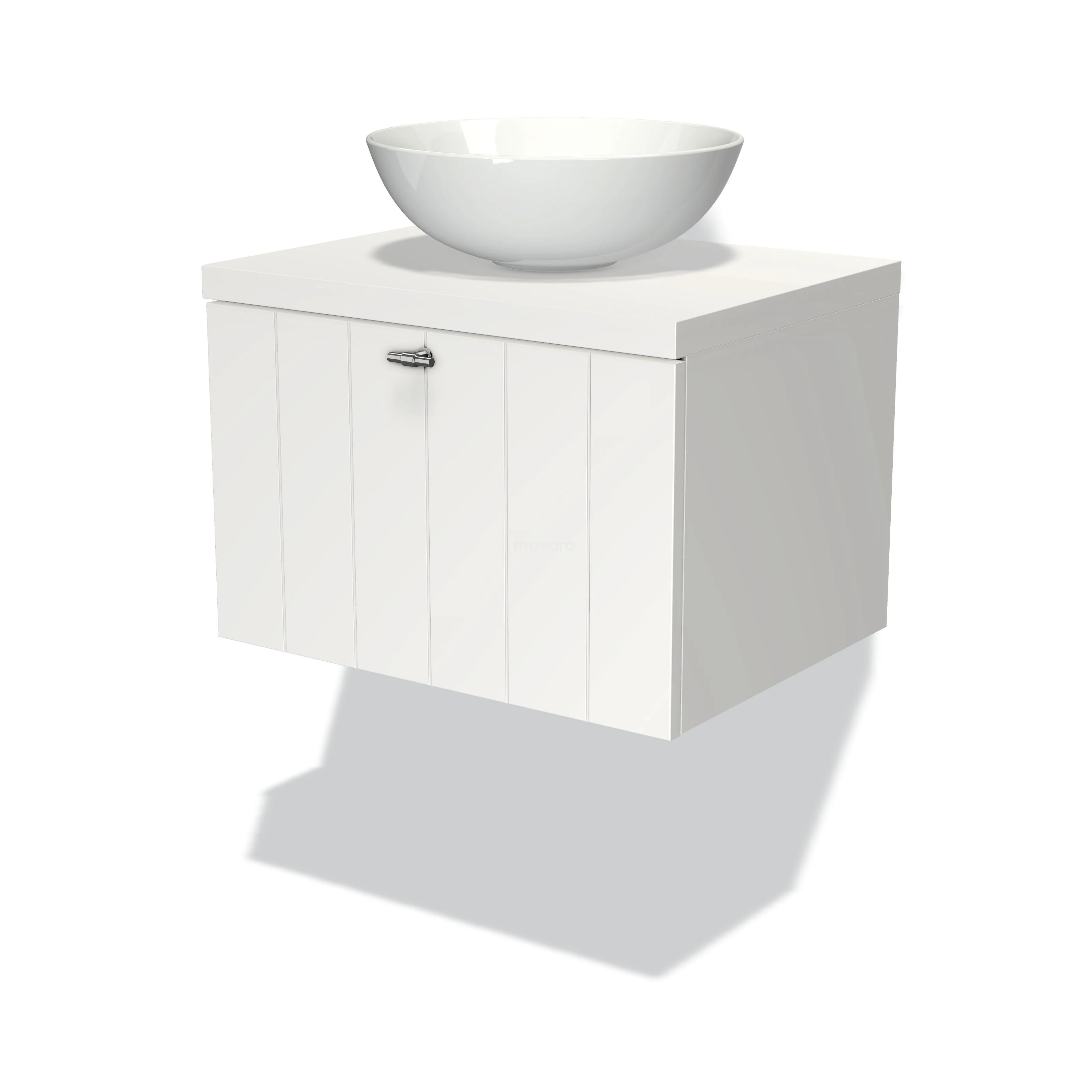 Modulo Plato Vanity units for countertop basin | 60 cm Matte white Slat front Matte white worktop 1 drawer