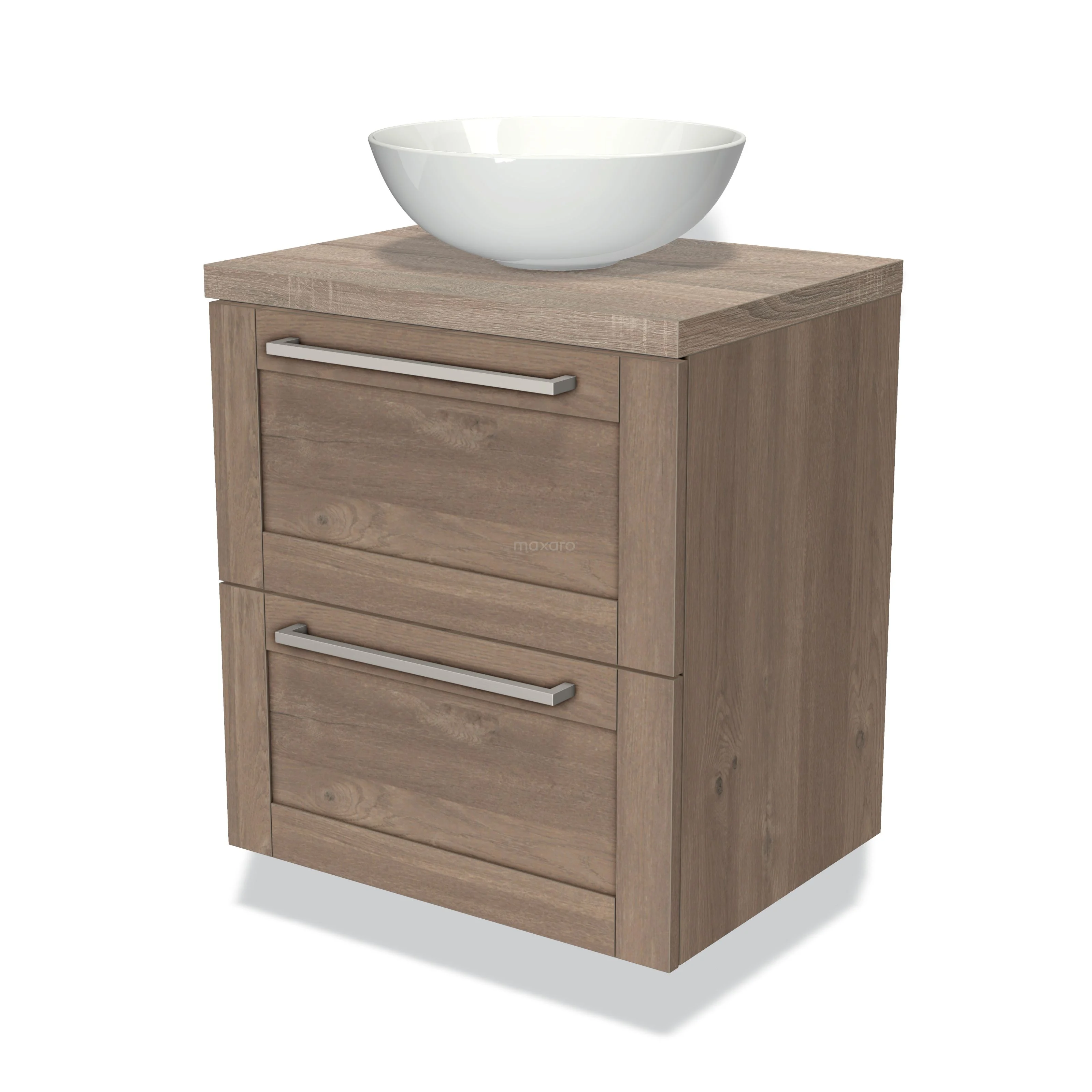 Modulo Plato Vanity units for countertop basin | 60 cm Mid brown oak Bordered front Oak worktop 2 Stacked drawers
