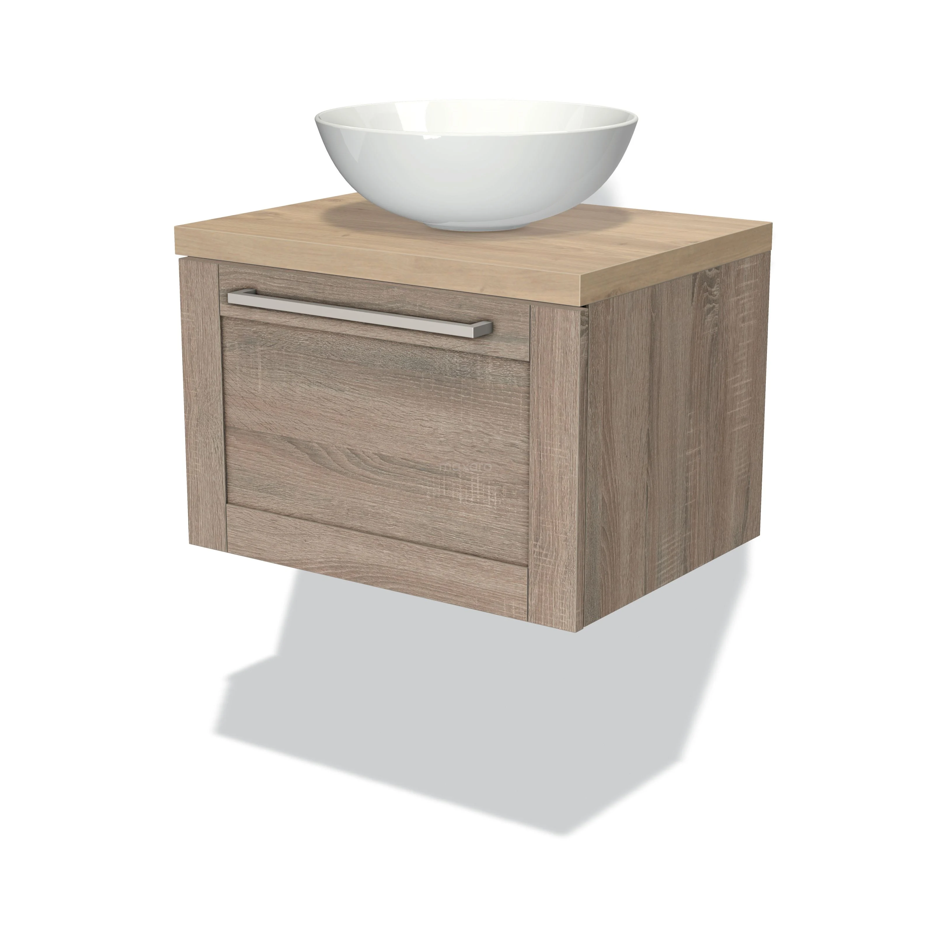 Modulo Plato Vanity units for countertop basin | 60 cm Oak Frame front Light brown oak worktop 1 drawer