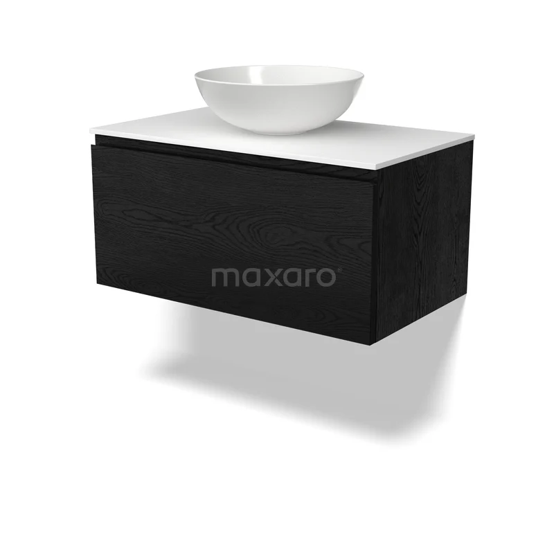 Modulo Plato Vanity units for countertop basin | 80 cm Black oak Handle-less front Solid surface worktop 1 drawer