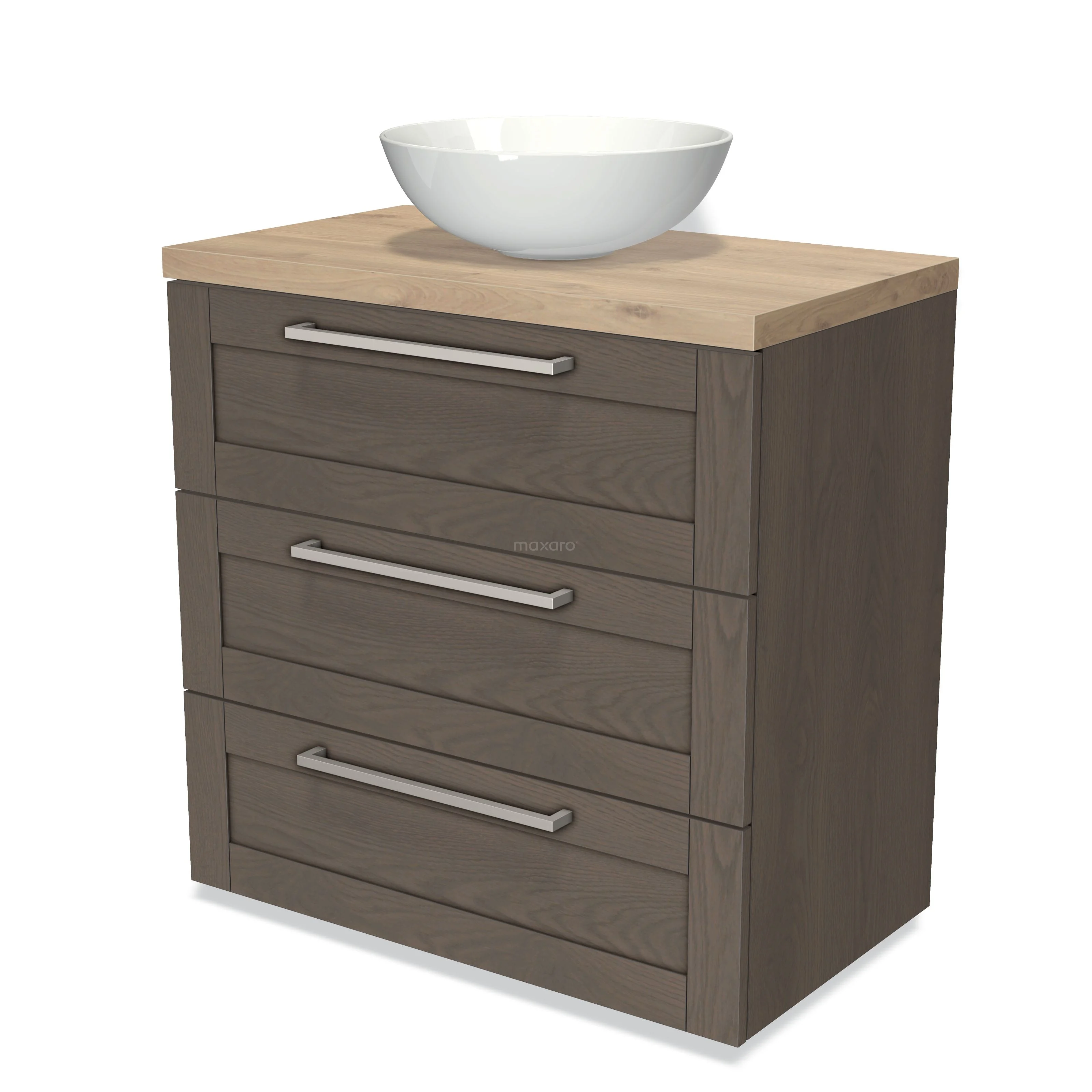 Modulo Plato Vanity units for countertop basin | 80 cm Dark brown oak Frame front Light brown oak worktop 3 drawers