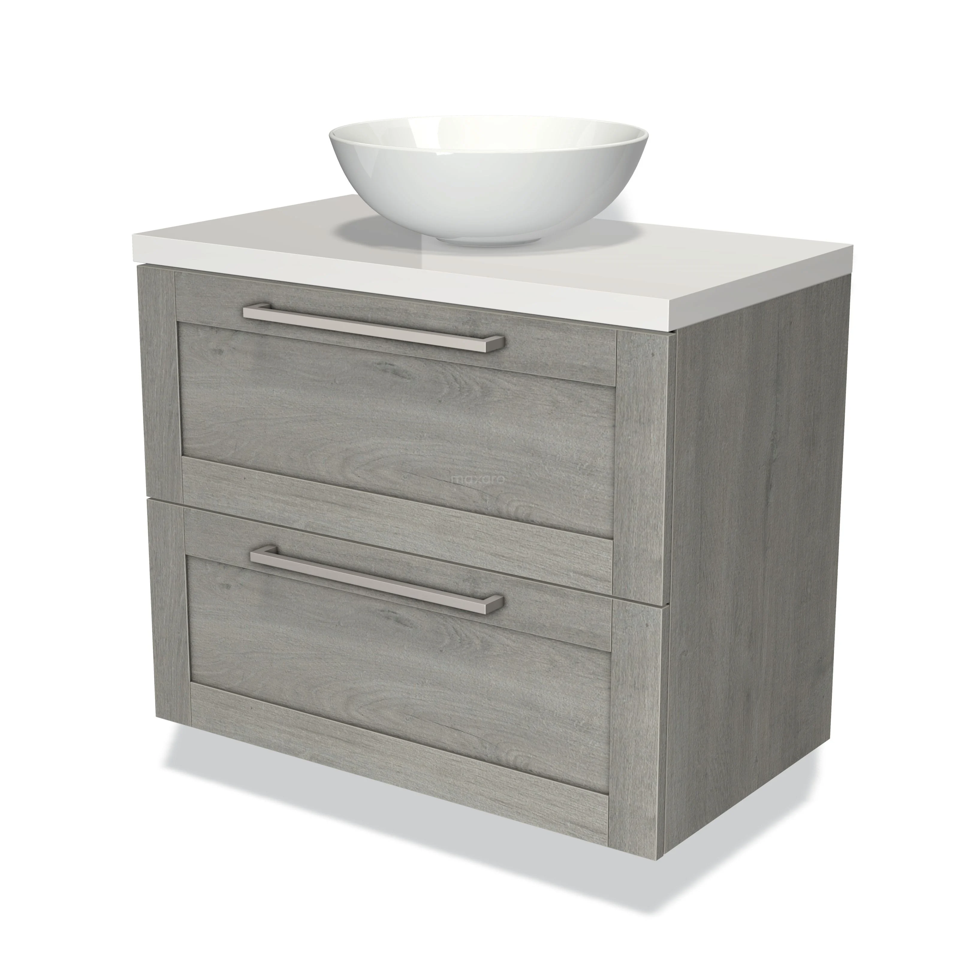 Modulo Plato Vanity units for countertop basin | 80 cm Grey oak Bordered front High-gloss white worktop 2 Stacked drawers