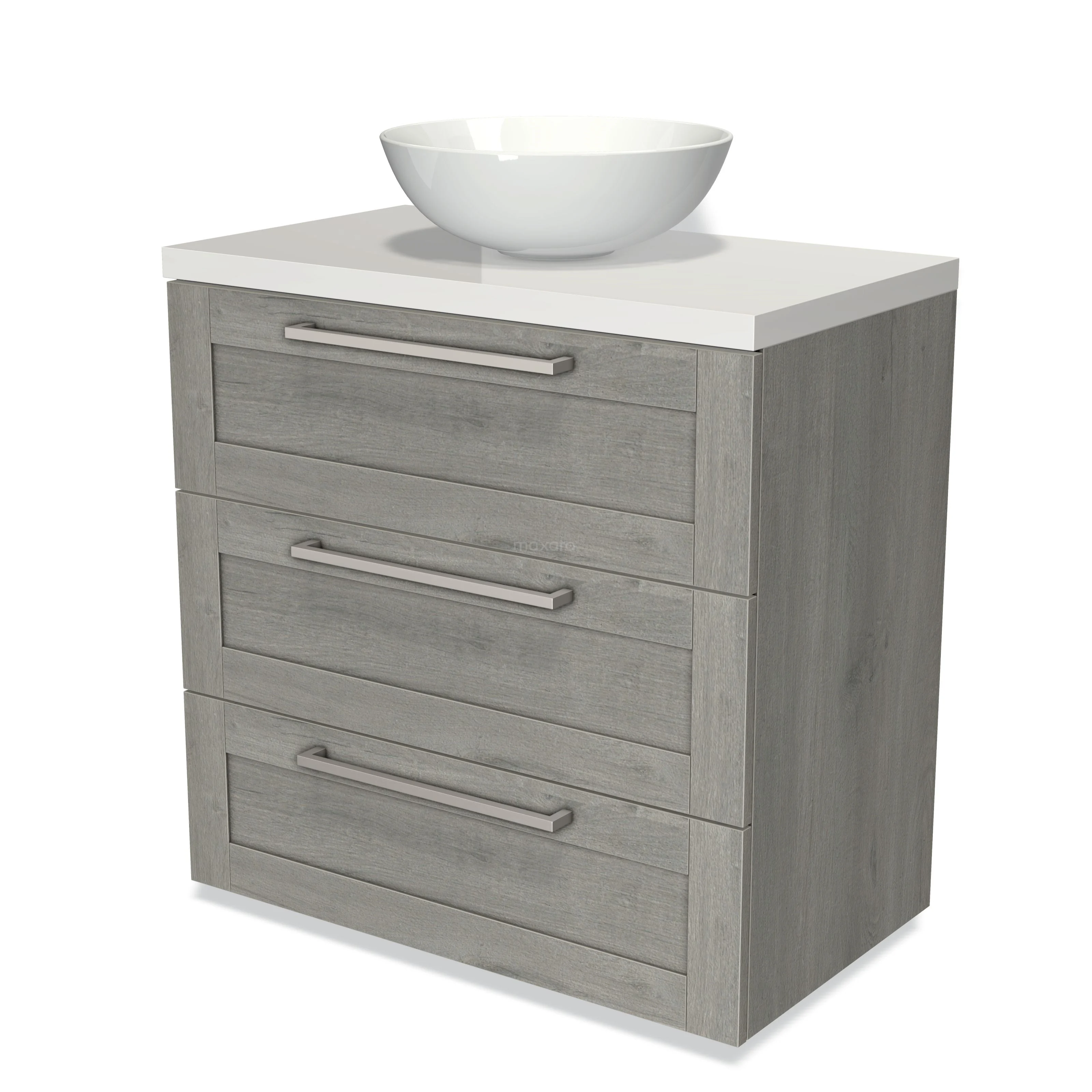 Modulo Plato Vanity units for countertop basin | 80 cm Grey oak Frame front High-gloss white worktop 3 drawers