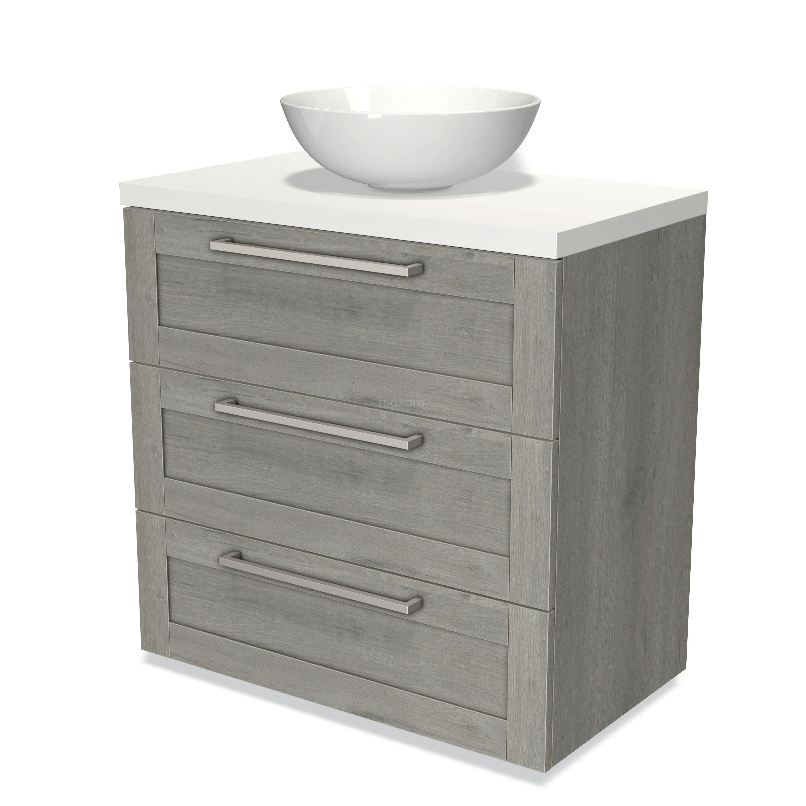 Modulo Plato Vanity units for countertop basin | 80 cm Grey oak Frame front Matte white worktop 3 drawers