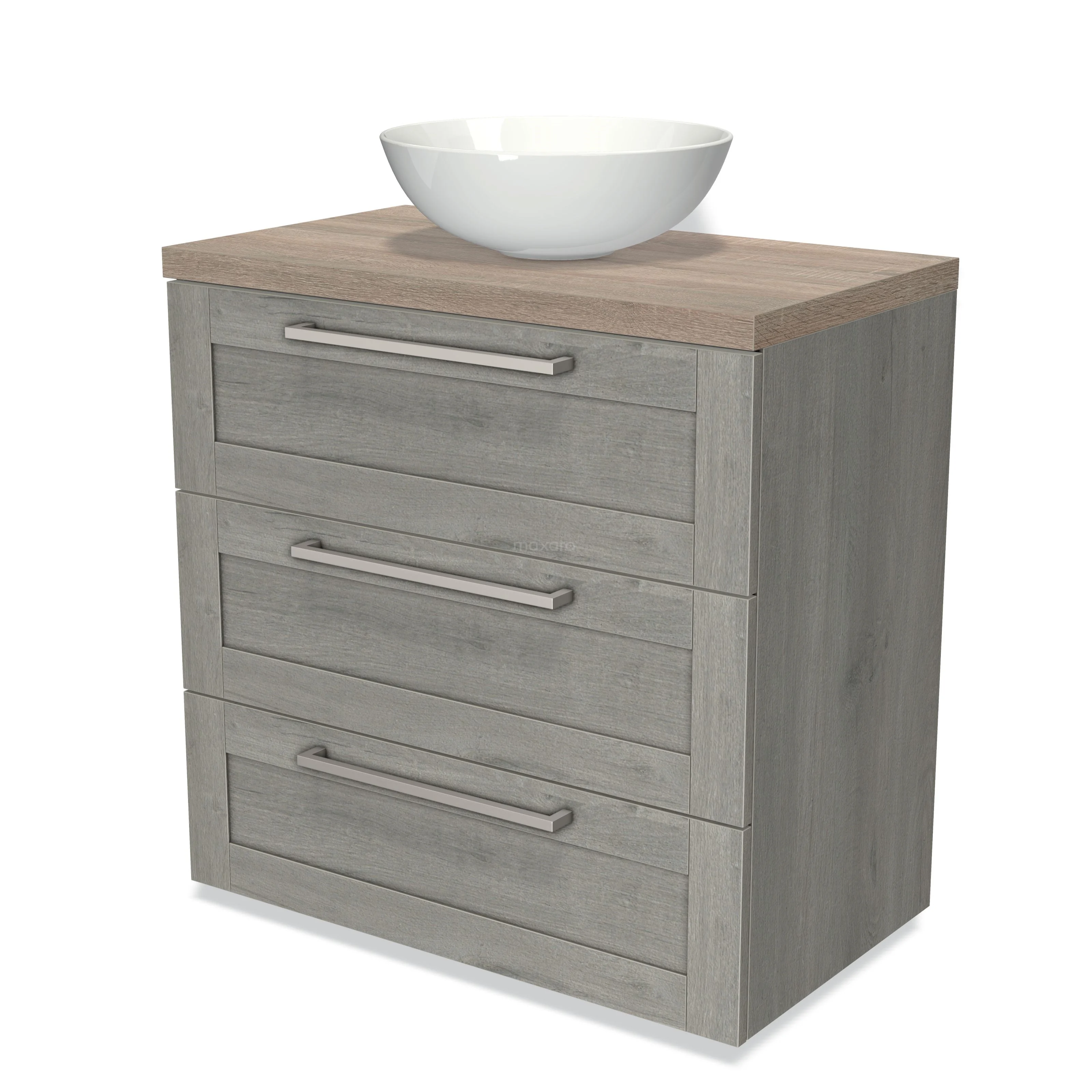 Modulo Plato Vanity units for countertop basin | 80 cm Grey oak Frame front Oak worktop 3 drawers