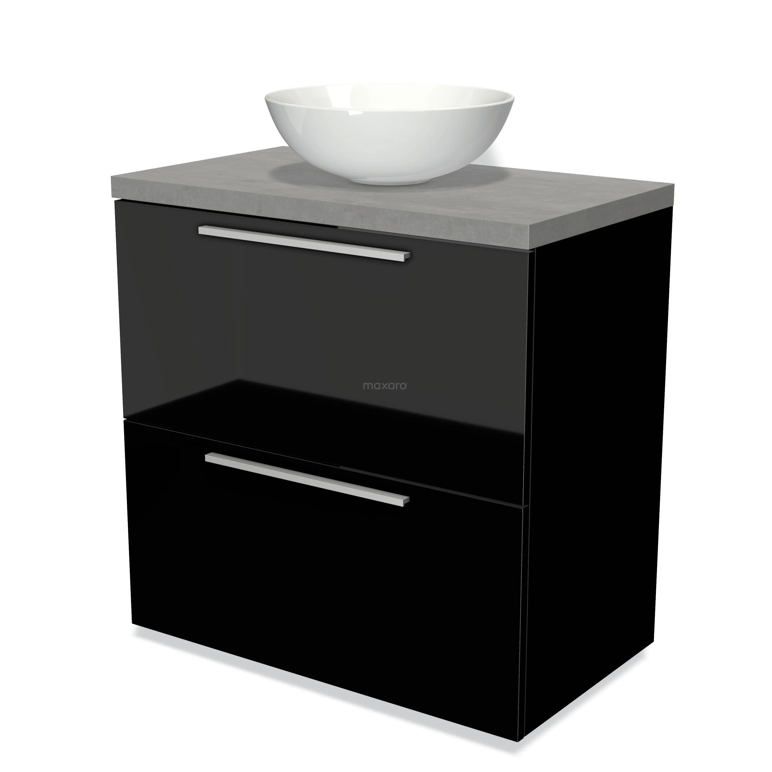 Modulo Plato Vanity units for countertop basin | 80 cm High-gloss black Flat front Light grey concrete worktop 2 stacked drawers under each other