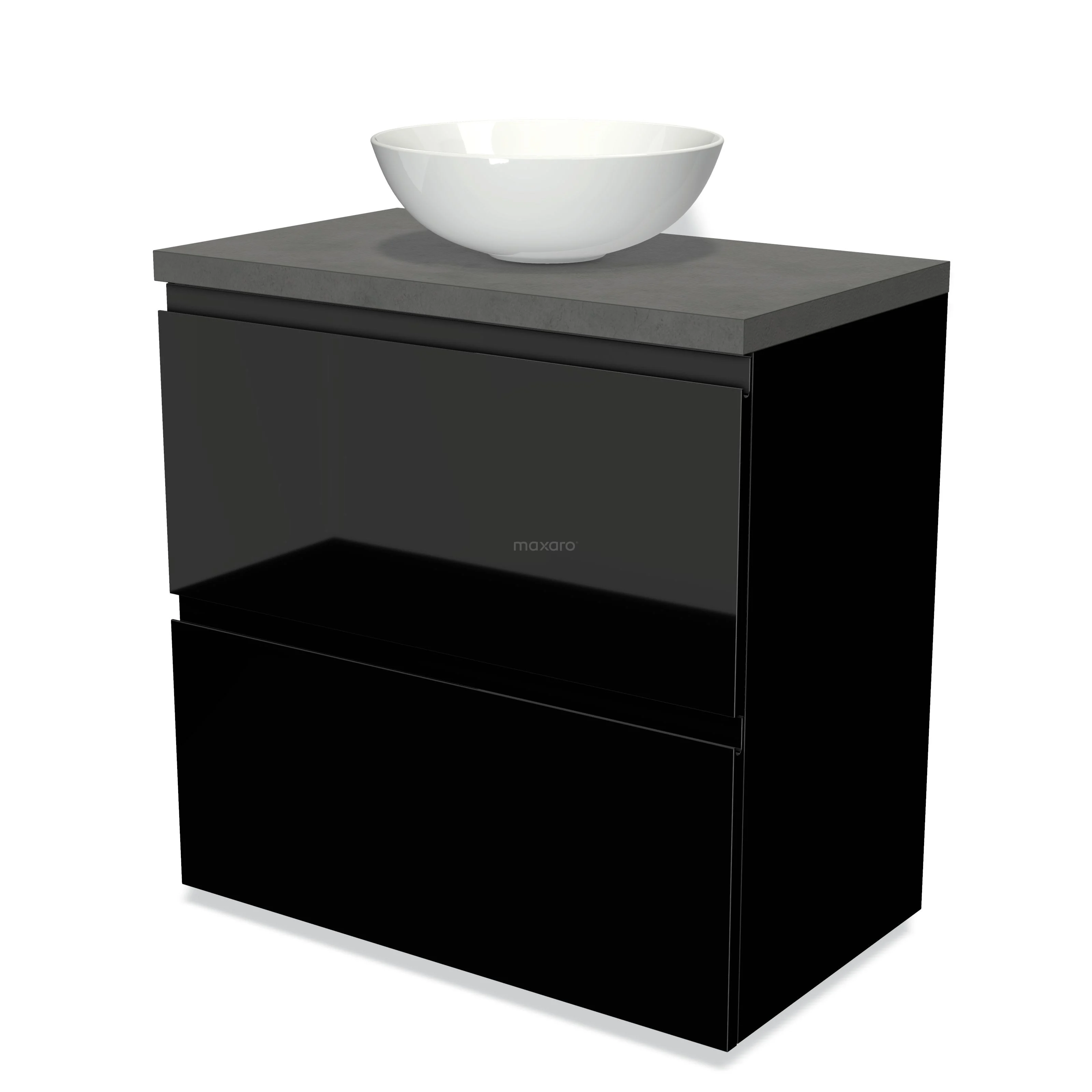 Modulo Plato Vanity units for countertop basin | 80 cm High-gloss black Handle-less front Dark grey concrete worktop 2 stacked drawers under each other