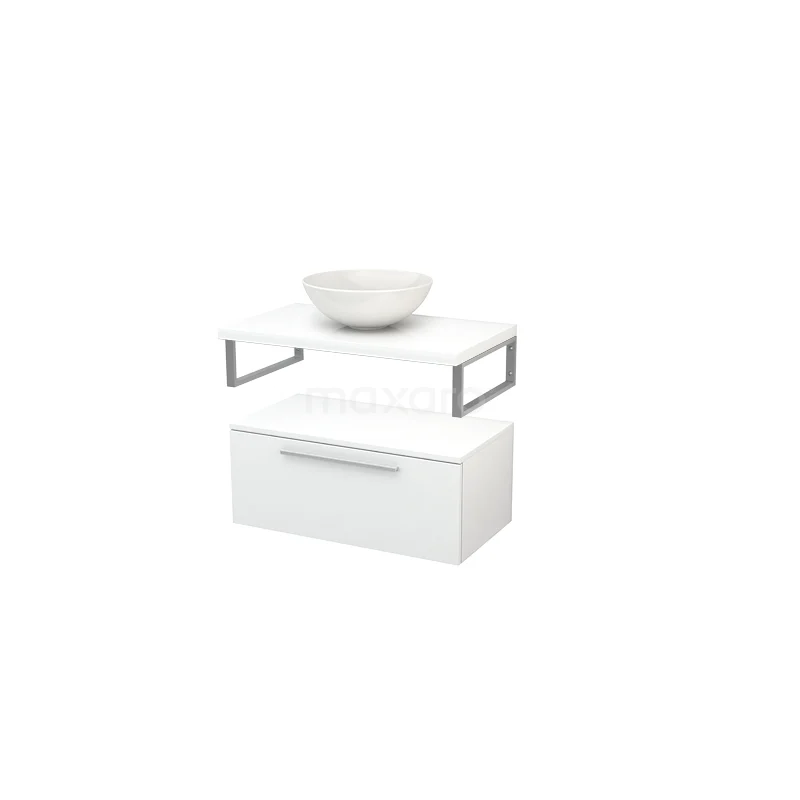 Modulo+ Plato Vanity units for countertop basin | 80 cm High-gloss white Flat front High-gloss white worktop Low floating