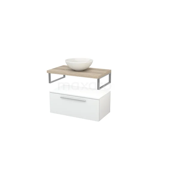 Modulo+ Plato Vanity units for countertop basin | 80 cm High-gloss white Flat front Oak worktop Low floating