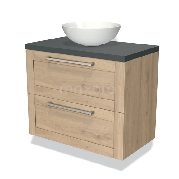 Modulo Plato Vanity units for countertop basin | 80 cm Light brown oak Bordered front Dark grey worktop 2 Stacked drawers