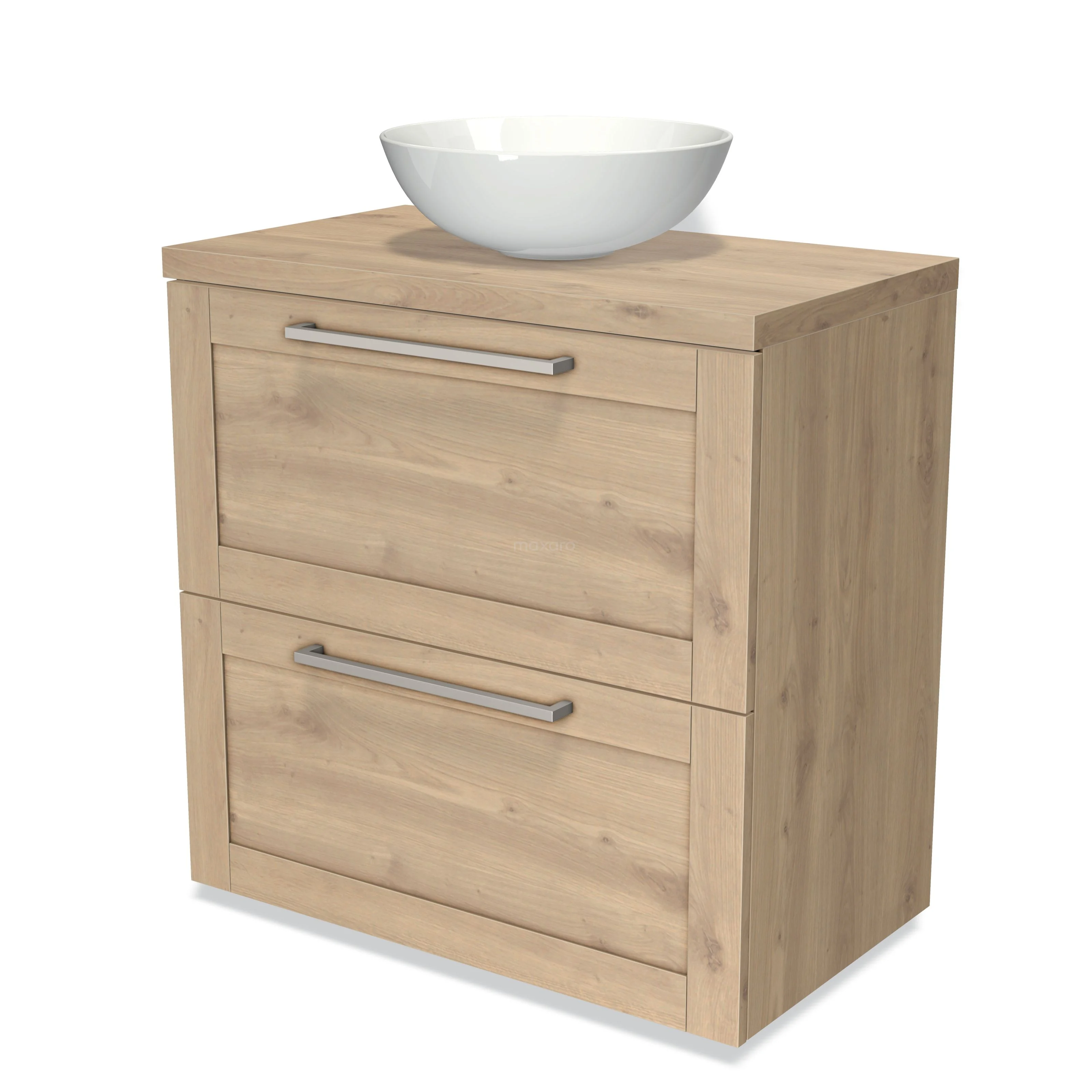 Modulo Plato Vanity units for countertop basin | 80 cm Light brown oak Frame front Light brown oak worktop 2 stacked drawers under each other